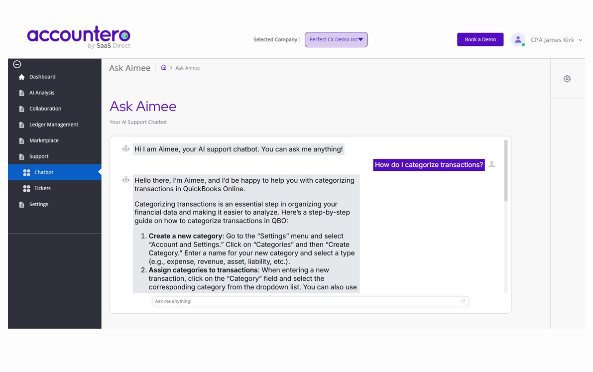 AImee provides immediate answers to common accounting questions, enhancing client satisfaction.